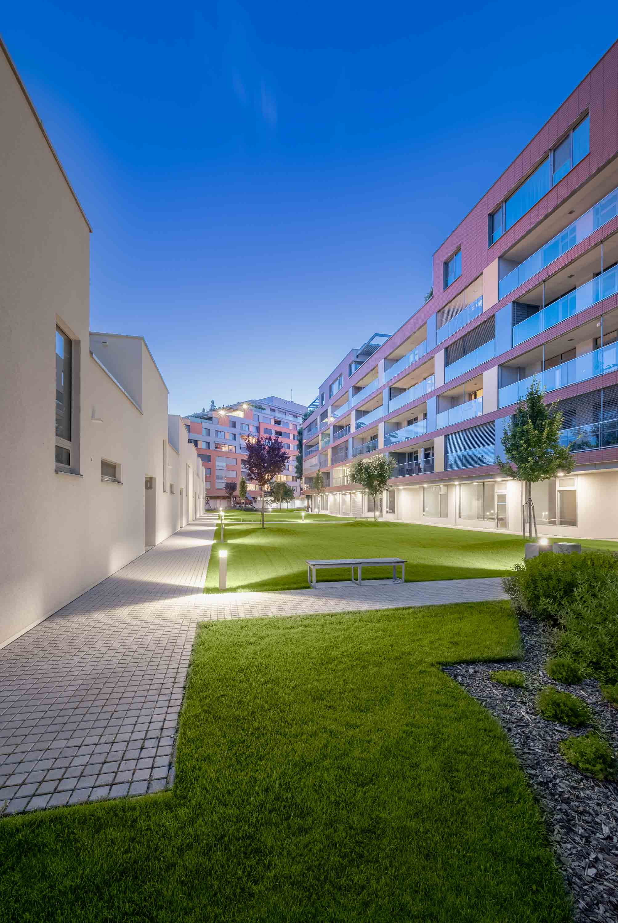 Quiet and green Karloveské rameno is just minutes from the city center and a short stroll from the Danube. The terraced architecture of the residential buildings respect the slopes’ natural incline, and usable roof areas are alive with greenery. Karloveské rameno II is the successful continuation of the project. This attractive area brings culture and new sports activities for Bratislava’s residents.
